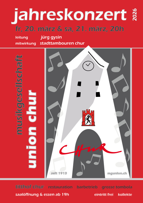 Herzlich willkommen auf der Website der Musikgesellschaft Union Chur. Wir sind ein Blasorchester in Harmoniebesetzung und haben uns der unterhaltenden Blasmusik verschrieben. Wollen Sie mehr über uns, unsere Auftritte und Aktivitäten erfahren? Dann sind Sie hier genau richtig. Wir freuen uns über Ihren Besuch.